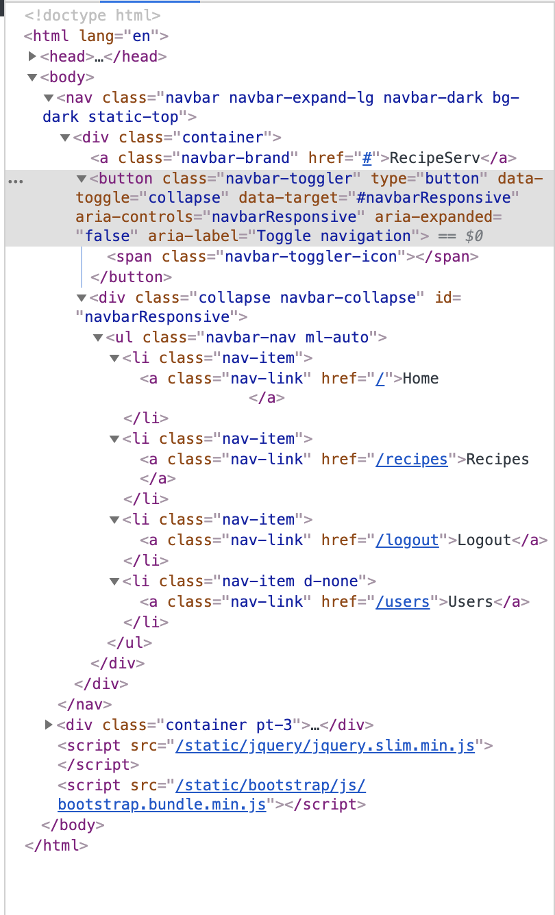 <button class="navbar-toggler" type="button" data-toggle="collapse" data-target="#navbarResponsive" aria-controls="navbarResponsive" aria-expanded="false" aria-label="Toggle navigation">