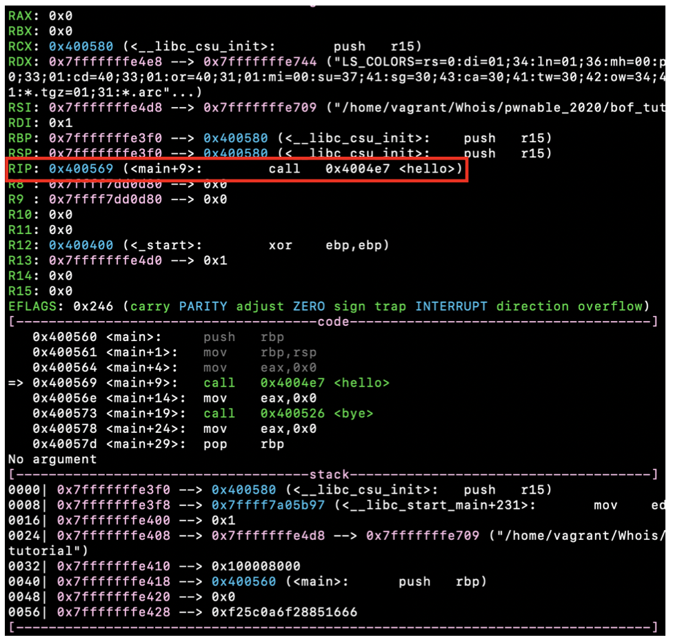 (즉 0x400569에 brake point가 있다면 0x400569수행직전에 멈춤)